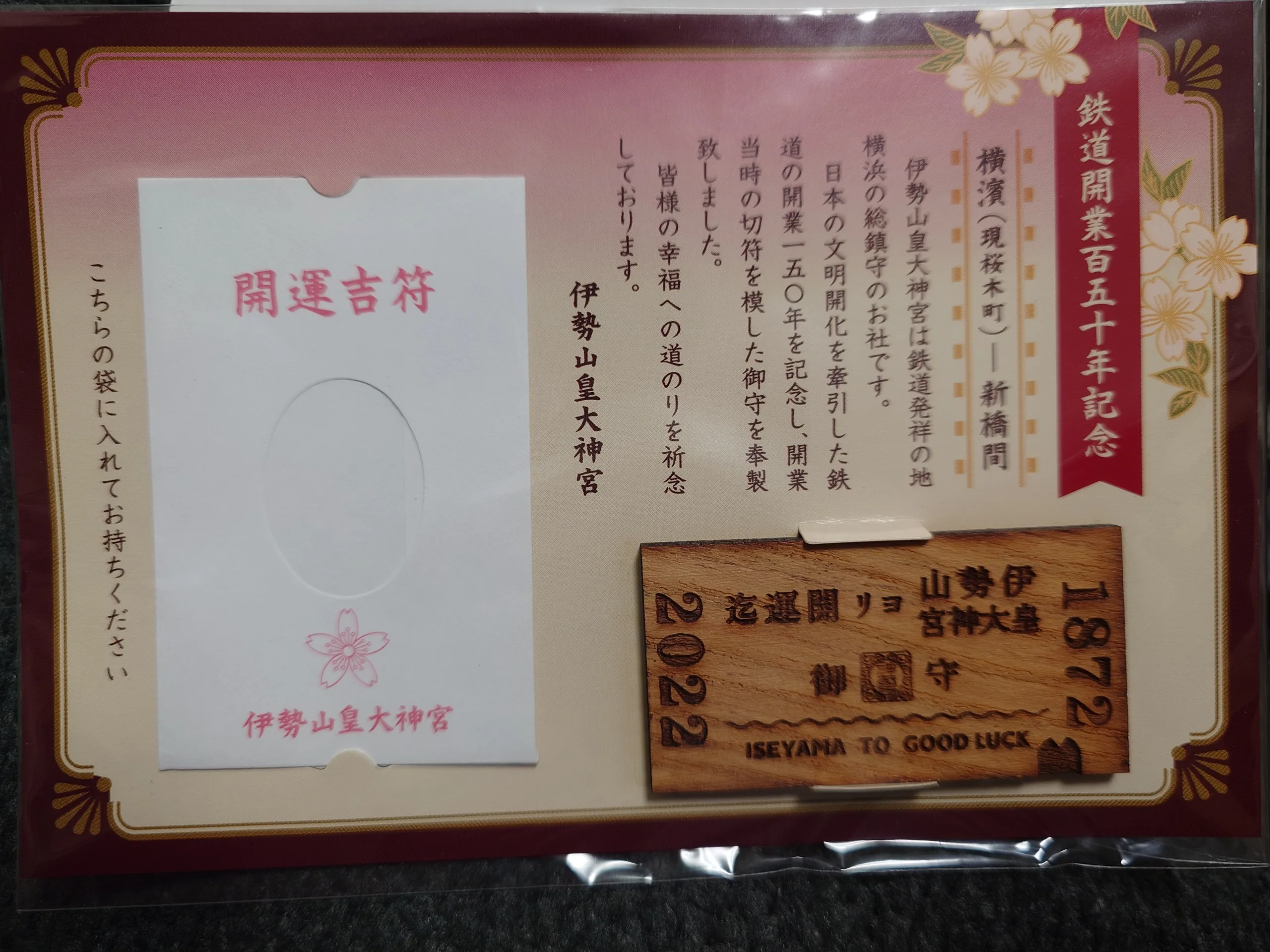 社務所に行くと、鉄道開業150周年記念の「開運吉符」が置いてあったのでいただいてきました。