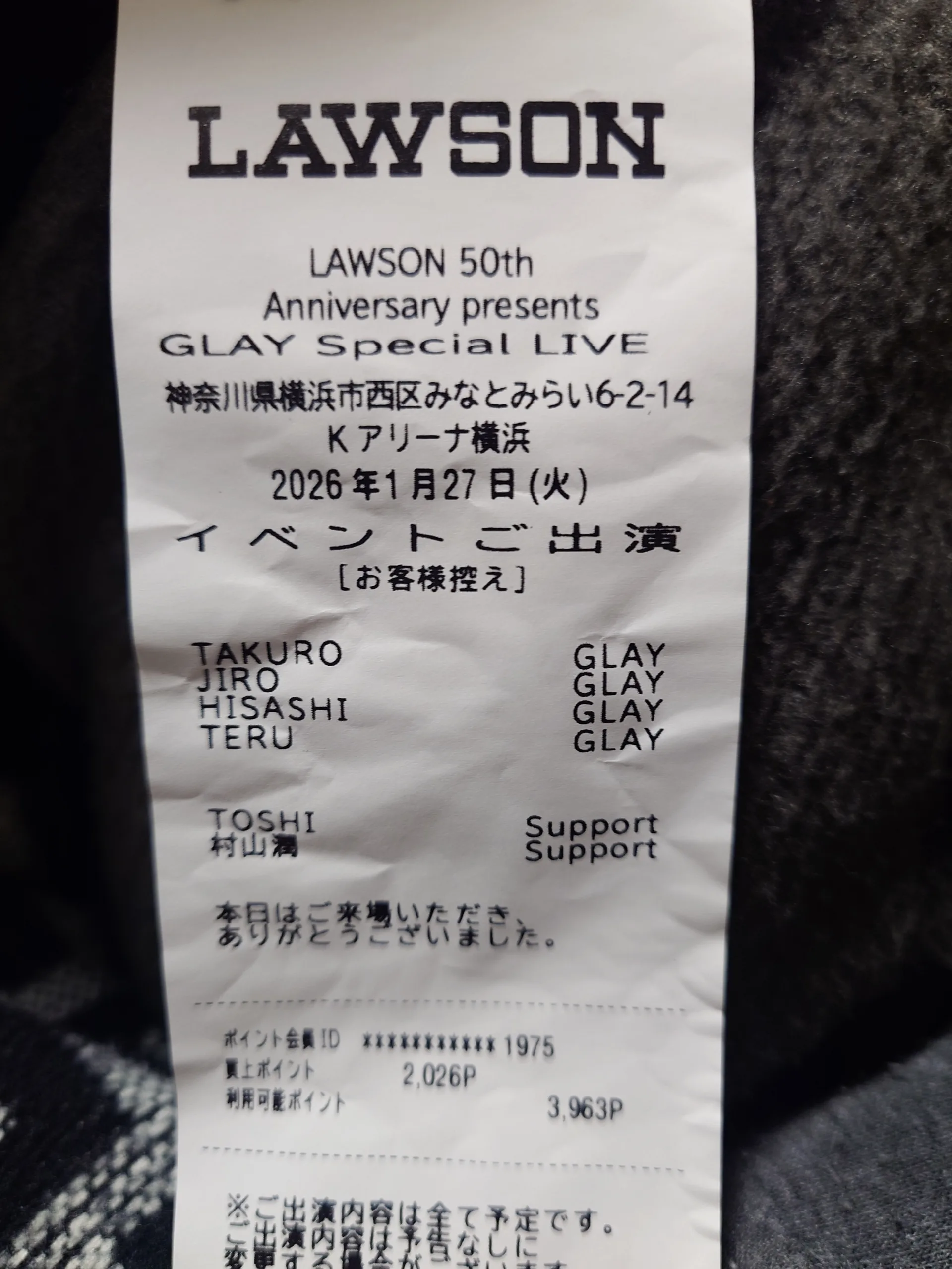開演前には、ローソンとGLAYの50年を振り返るVTRが流されていたそうです。